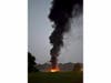Jones said firefighters tried to put out the fire at the main crash site but withdrew after an explosion forced them back. The fire produced towering plumes of black smoke visible for miles across the flat region and continued to burn after dusk, more than four hours after the crash.