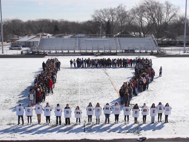 "Almost all of the organizers are in marching band, so they know the field pretty well," said Amy Oberhart, a 16-year-old sophomore who worked with seven other Oak Forest students to organize the local walkout. "At the beginning of the school year, we did spelled 'OFHS' and 'Bengals,' so we wanted to incorporate that idea again."