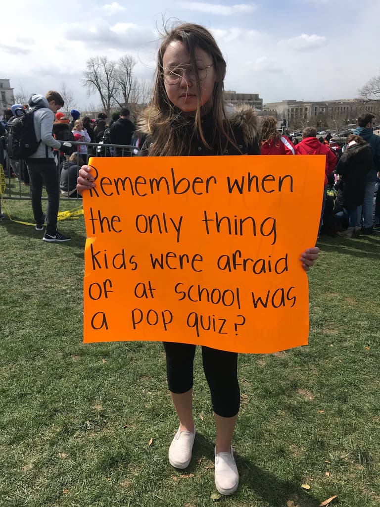 Across America Wednesday, tens of thousands of students streamed out of their classrooms in protest, some marching to the steps of the U.S. Capitol, others onto the streets of Harlem and, notably, others to a football field in Parkland, Florida, outside Marjory Stoneman Douglas High School, where a month ago to the day, a gunman shot and killed 17 people. Many risked suspension to speak both of their hope — that Congress will hear their voices and enact stronger gun laws — and their fear — that their schools will be the next target.