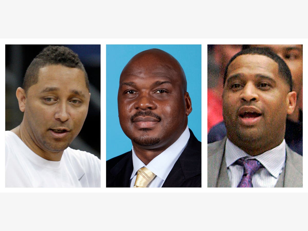 Lead image: Assistant basketball coaches Tony Bland, left, Chuck Person, center, and Lamont Richardson. (AP Photo/File)