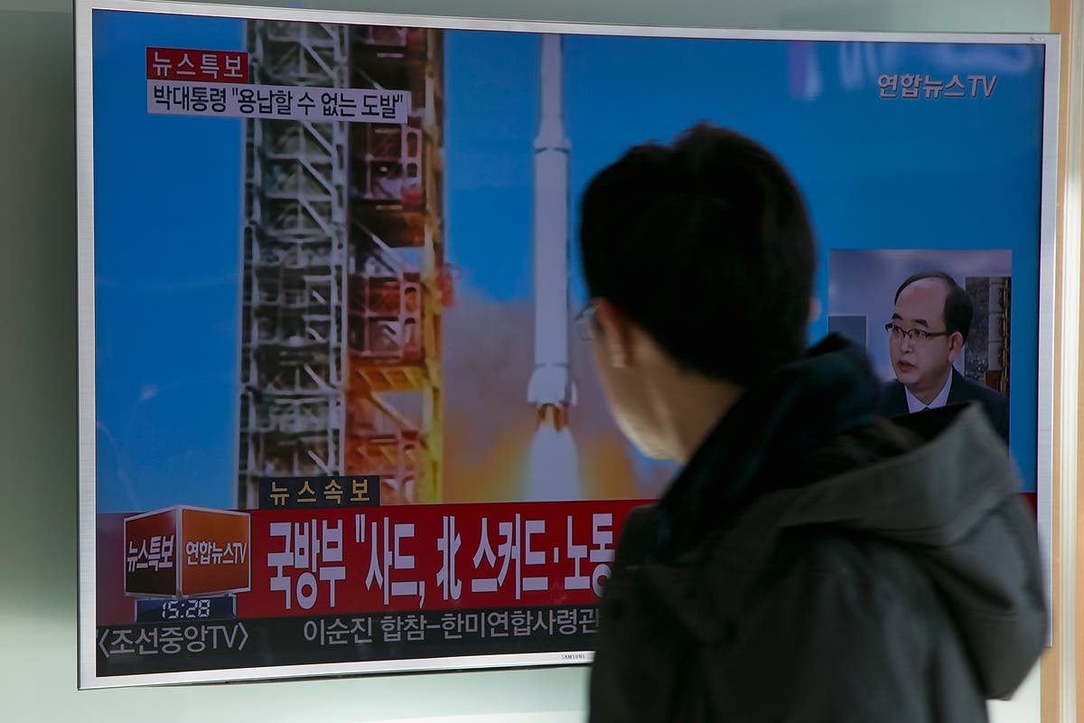 Photo: People watch a television screen showing a breaking news on North Korea's long-range rocket launch at Seoul Station on February 7, 2016 in Seoul, South Korea. North Korea launched a long-range rocket carrying a satellite on February 7, 2016. The launch is considered by Western experts as part of a program to develop intercontinental ballistic missile technologies, banned by the multiple of past resolutions of the U. N. Security Council against the country. South Korea, the United States and Japan have requested an emergency meeting of the U.N. Security Council. (Photo by Han Myung-Gu/Getty Images)