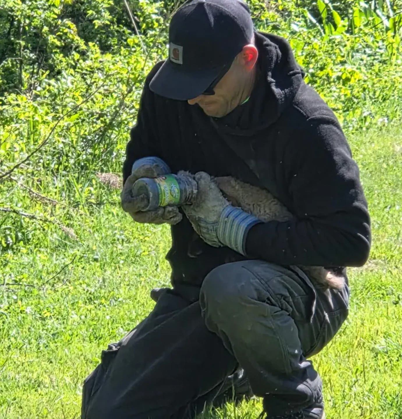 It needed help. Joe Judge and Dave Kabana were working at a park when they saw the young fox in distress. Its head was stuck in a peanut butter jar.