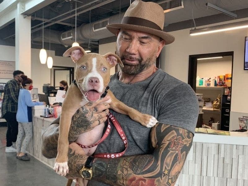 While he may resemble an immovable force of nature in the wrestling ring, those who know WWE star and actor Dave Bautista will tell you he's a total pushover where animals are concerned. It's that soft spot that led the “Guardians Of The Galaxy” actor, who lives in Port Tampa, Florida, to offer a $5,000 reward to find the person responsible for abusing a 3-month-old puppy found with a metal chain embedded in her neck. It’s also what drove him to take the puppy home.