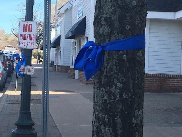 The trees along Montauk Highway were bedecked with blue and black ribbons, with local Scouts from Troop 483 helping to tie them.