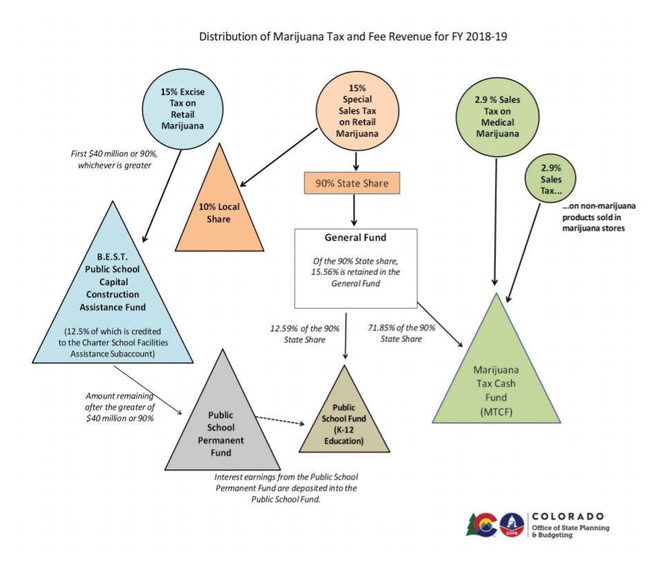 Marijuana tax revenue funds Colorado Department of Education programs such as the Building Excellent Schools Today capital construction assistance fund, the Early Literacy Competitive Grant Program, the School Health Professional Grant Program and the School Bullying Prevention and Education Grant Program.