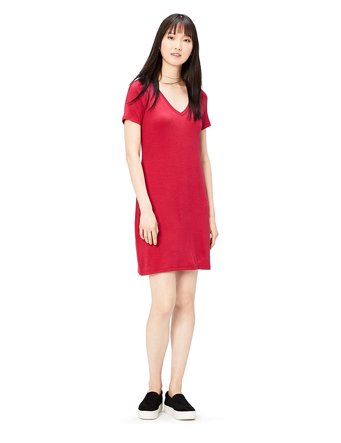 This soft jersey dress features a V-neck and relaxed fit that flatters nearly every figure. The fabric is 95 percent Rayon, 5 percent spandex and 100 percent comfortable. It's machine washable and wrinkle resistant making it perfect for travel. This best-selling dress is available in multiple colors in sizes from XS to XXL; discounts may vary.