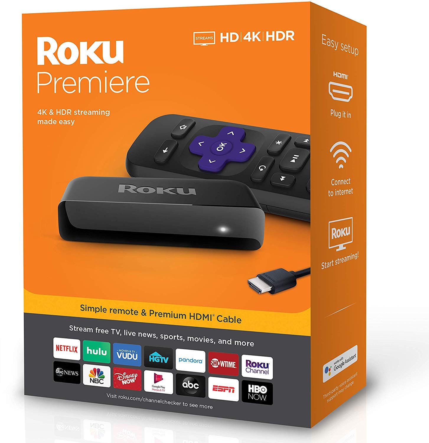Stream more than 500,000 movies and TV episodes with the Roku premiere remote and premium HDMI cable. Setup is simple: Plug it in, connect to the internet and start streaming. Use the Roku remote to search for your favorite programs and discover thousands of free and paid channels to stream live TV, popular shows, news, sports and more.