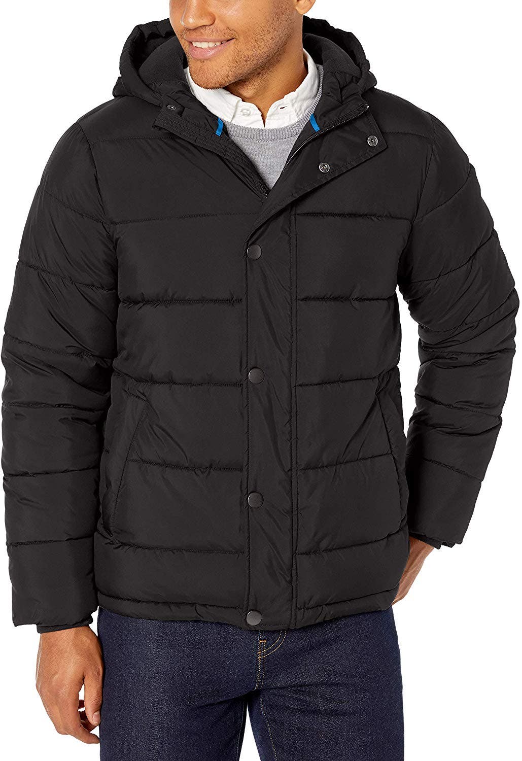 Amazon Essentials Men's Heavy-Weight Hooded Puffer Coat (35 percent off*) — This water-resistant, taffeta-lined jacket has deep pockets and a stretch cuff with thumbhole to protect your hands in the winter months. It's available in multiple sizes and colors; prices and discounts may vary.