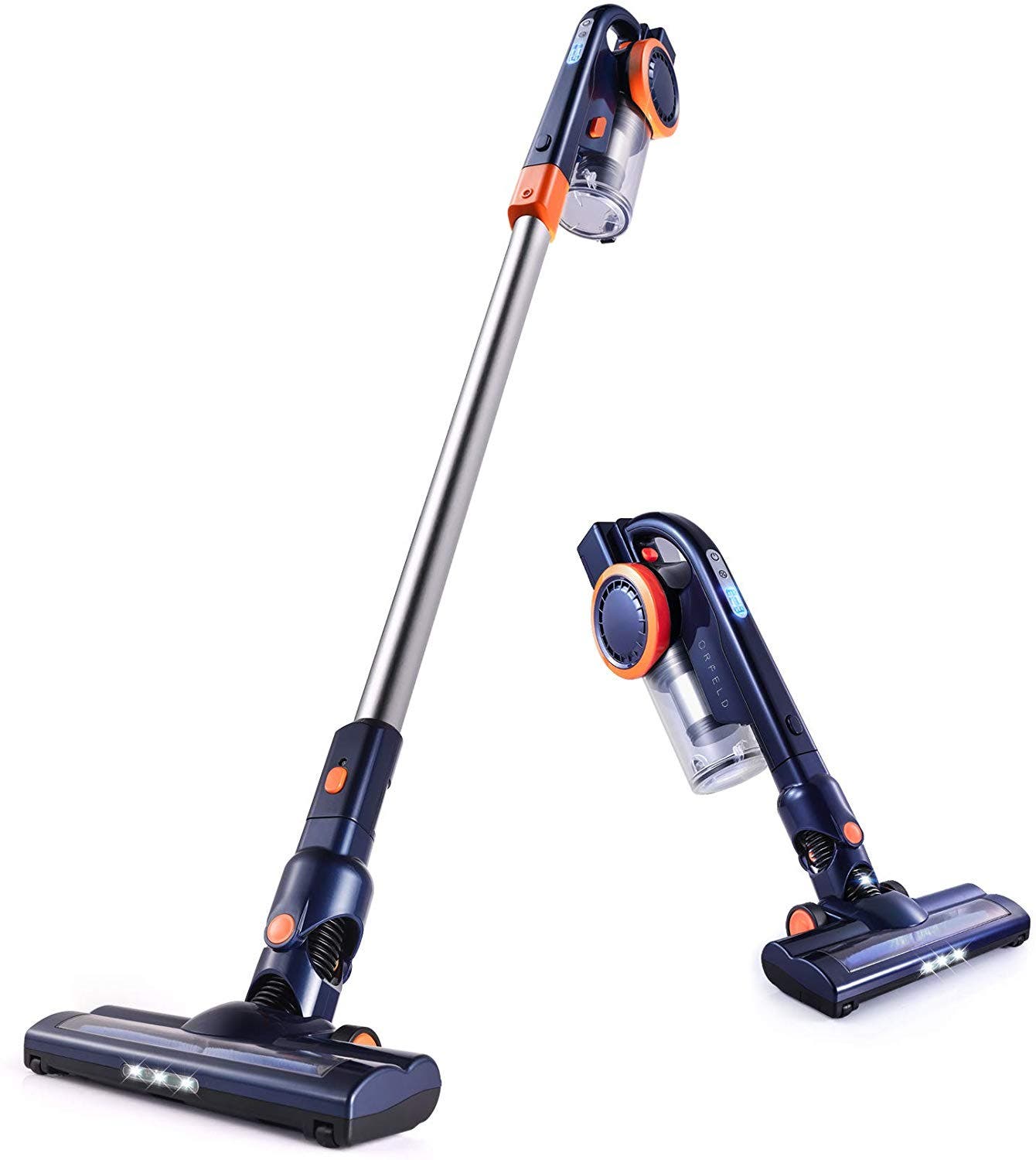 This compact, portable stick vacuum is perfect for cleaning the car and all those hard-to-reach corners of your house. It has two powerful suction modes and comes equipped with multiple cleaning tools and a charging station. At only 4.62 pounds, this cordless vacuum is ultra lightweight and easy to maneuver.
