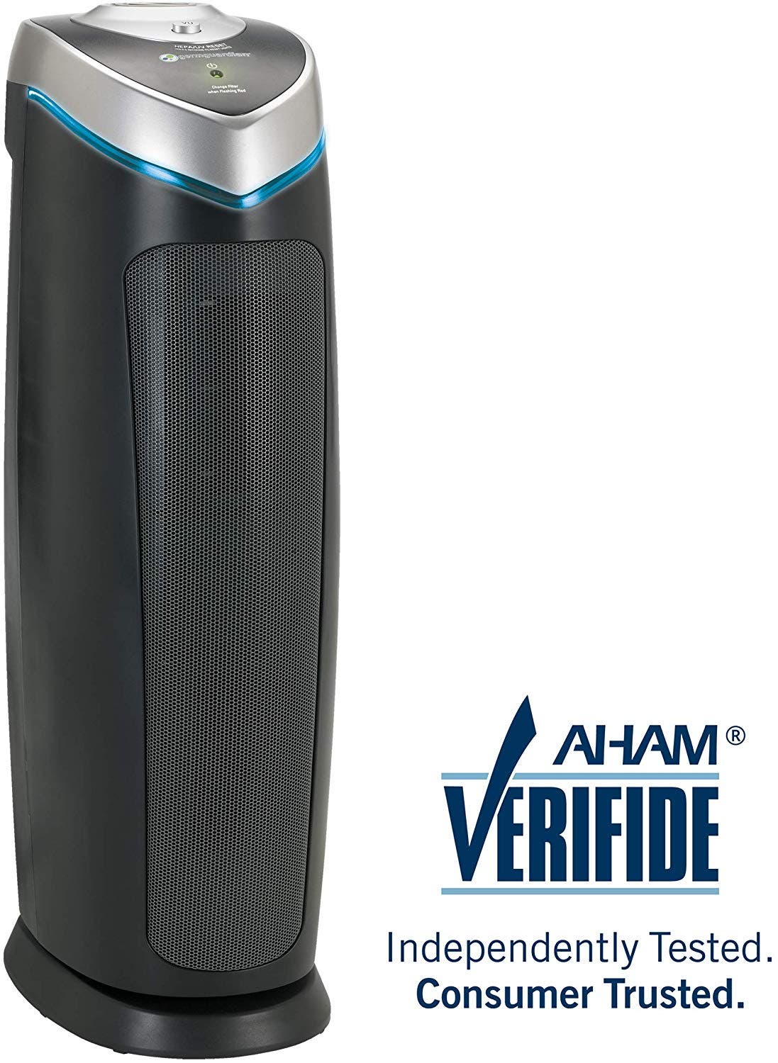 The Germ Guardian has a UV-C light that kills airborne germs, bacteria, viruses and mold spores. Its true HEPA filter captures 99.97 percent of dust, pollen and pet dander, making it a must-have for allergy sufferers. It even has a charcoal filter to capture odors created by cooking, smoking or pets. The filter only needs to be replaced every six to eight months (depending on the use of the product), and an indicator light comes on to make it clear when this should happen.