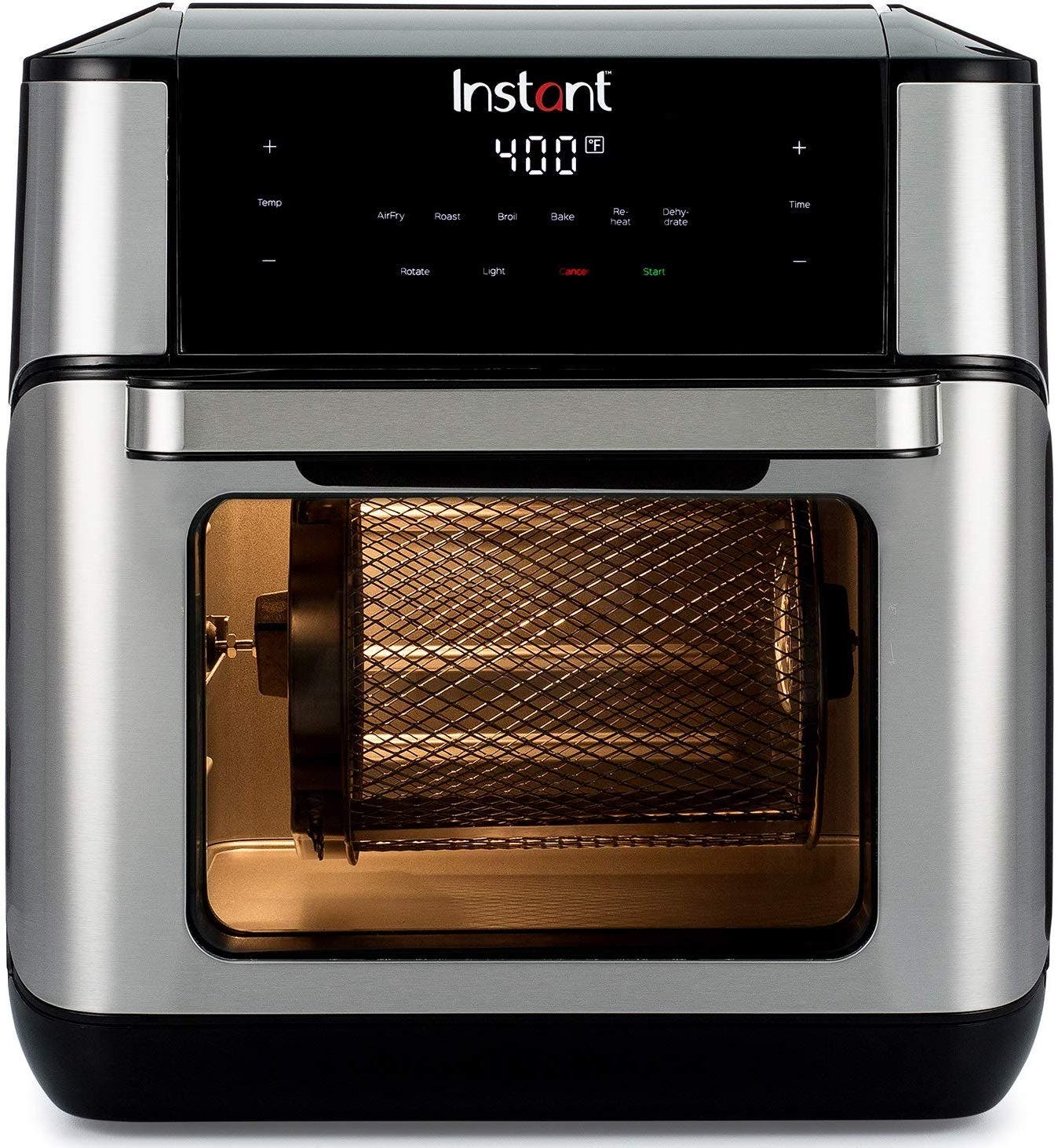 This air fryer gives you all the flavor and crispiness of deep-fried cooking without the oil and mess. It also has seven built-in smart programs including bake, roast, toast, broil, dehydrate and rotisserie. Plus, its large, 10-quart size allows you to air fry, bake and roast multiple meals at once.