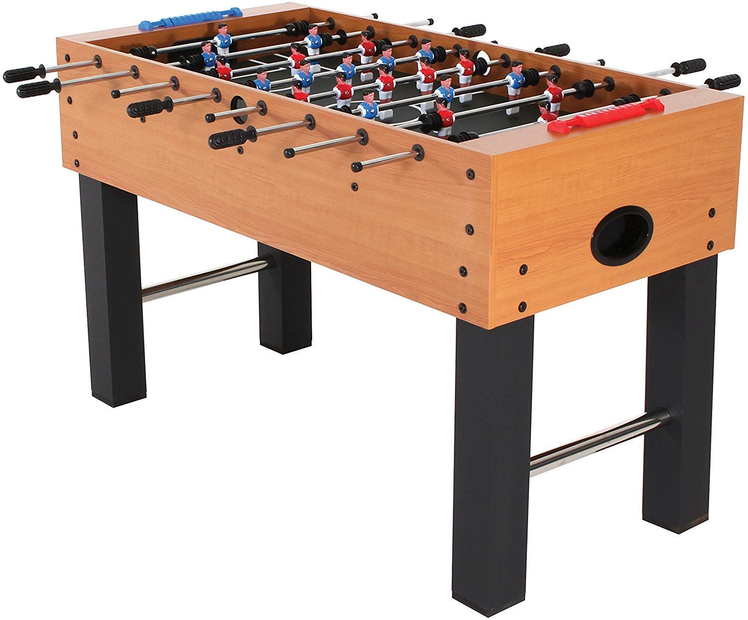 Bring endless hours of fun and games into your home with this sturdy, durable foosball table. It features abacus-style scoring and an internal ball return system to keep the games moving quickly.