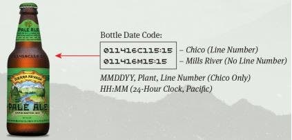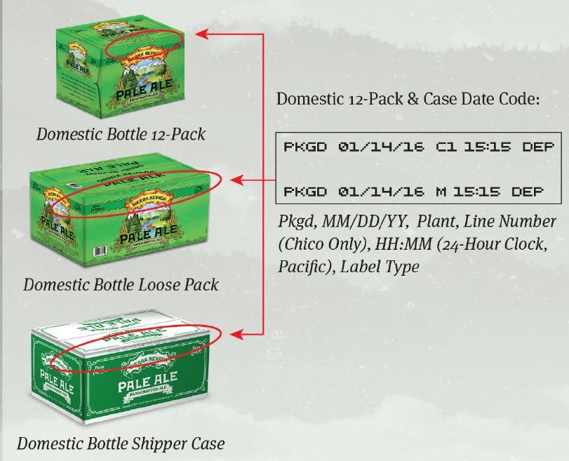 - Pale Ale, 12-ounce bottles in 6-, 12- and 24-pack (case) formats, production dates between 12/5/16 - 1/8/17