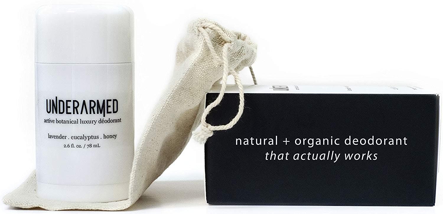 This aluminum-free natural deodorant contains organic ingredients that detox your body and nourish your skin. The subtle scent of lavender eucalyptus is the result of therapeutic grade native essential oils — not synthetic fragrances. Underarmed deodorants even come with a 60-day money-back guarantee: If it's not the best deodorant you've ever used, they'll refund you.
