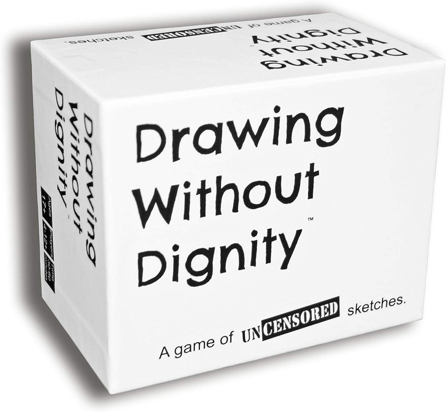 In this adult party game, your knowledge of (and ability to draw) inappropriate material is expected and necessary to win. To play, you'll form teams, roll the die, pick a card and draw an uncensored sketch. When you guess correctly, you score! Drawing Without Dignity can be played by 4 to 12 people and is recommended for adults who are not easily offended.