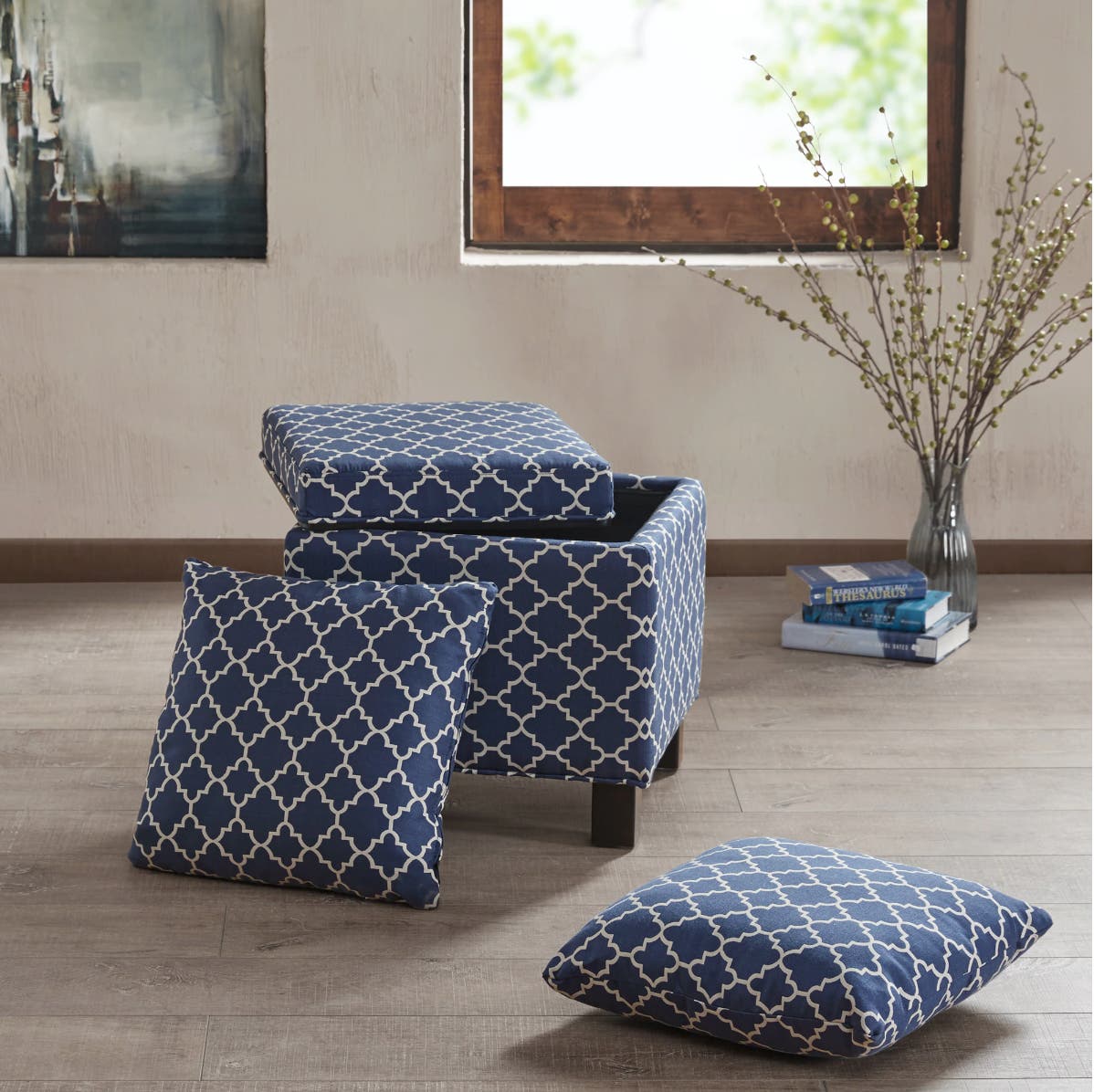 Madison Park Allison Navy Square Storage Ottoman