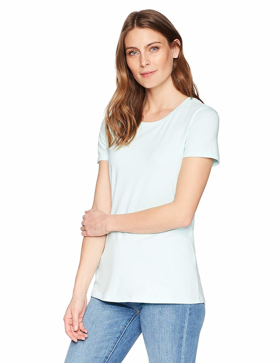 We've searched high and low for the perfect women's T-shirt, and at long last, we've found it: The Amazon Essentials short-sleeve crewneck tee. It's made of 56 percent cotton, 38 percent modal and 6 percent spandex — just the right balance of soft, stretchy and structured.