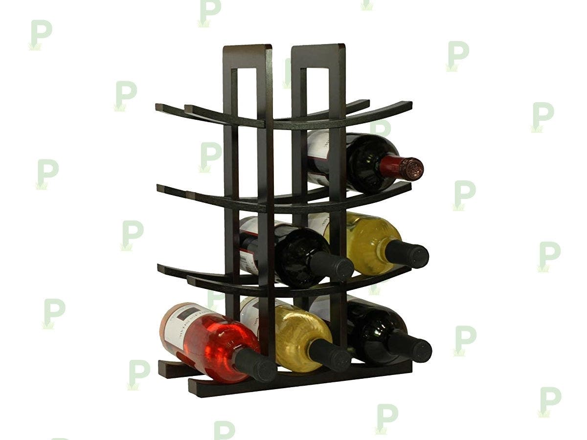 This bamboo wine rack will look exquisite on just about any countertop. Made of elegant, dark espresso bamboo, the easy-to-assemble rack beautifully showcases up to a dozen bottles of wine and matches any home's unique style.