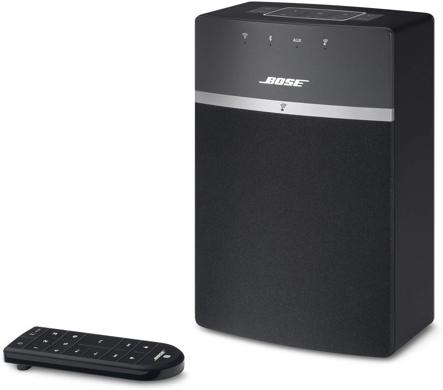 Bose SoundTouch 10 wireless speaker (50 percent off) — This compact, single piece wireless speaker delivers rich, incredible room-filling round. It works with your WiFi, Bluetooth devices and Alexa to play music services like Amazon Music, Spotify, Internet radio stations and your stored music library. Access your music via the powerful Bose app, the intuitive remote or six presets on the Bose SoundTouch speaker.
