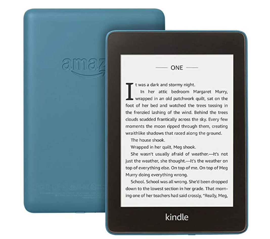 Kindle Paperwhite (35 percent off) — The thinnest, lightest Kindle Paperwhite yet has a crisp, glare-free display that reads like real paper even in bright sunlight. This model is waterproof, so you can read by the beach or in the bath worry-free. A single battery charge lasts for weeks, not hours, and with 8 GB of storage, you have plenty of room for e-books, magazines, comics and audiobooks.