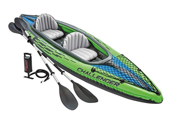 Intex Challenger K2 Kayak (69 percent off) — This inflatable kayak holds two people and comes with two 86-inch aluminum paddles, as well as a high output pump for easy inflation and deflation. See more Intex kayak Cyber Monday deals here.