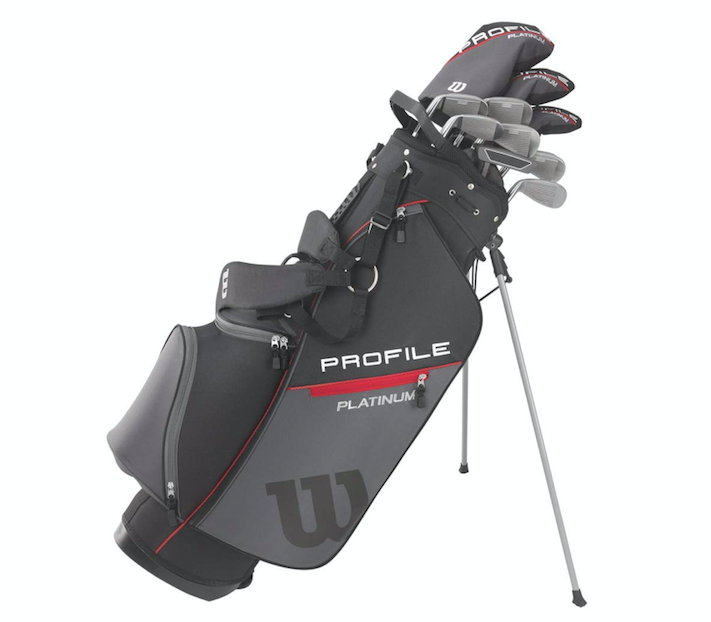 Wilson Golf Men's Profile Platinum Package Set (25 percent off) — Lightweight and ergonomically designed, this golf bag contains a high-end PVD black-finished driver, a number five fairway wood, a number five hybrid, irons six through sand wedge and three matching head covers.