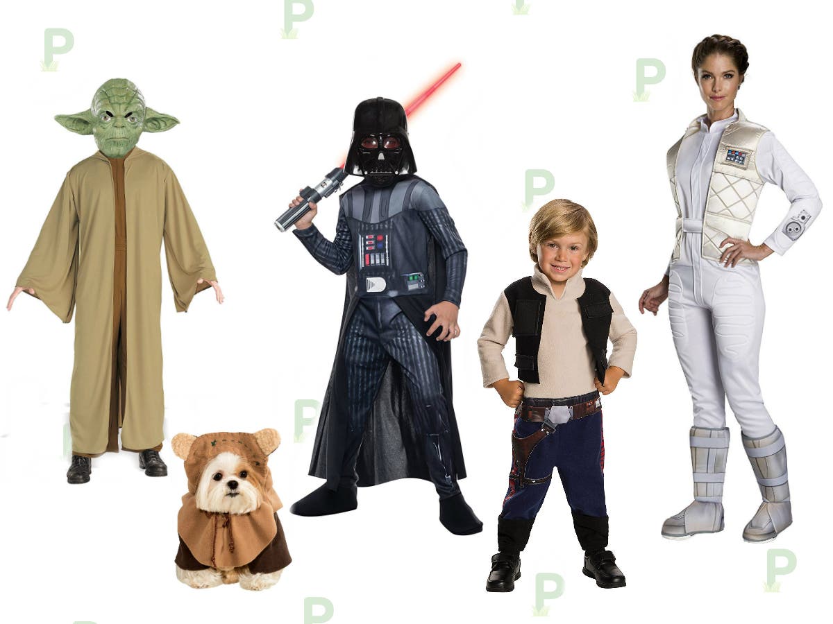 The force is strong with these epic "Star Wars" costumes! Parents, kids and even pets can dress up as Jedi Knights, Stormtroopers, Ewoks, Han Solo, Princess Leia, Yoda, Darth Vader and more.