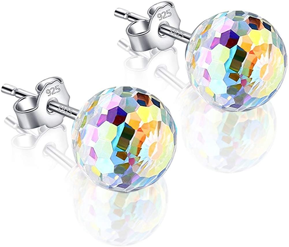 LuckySuen Sterling Silver Crystal Stud Earrings, $17.99