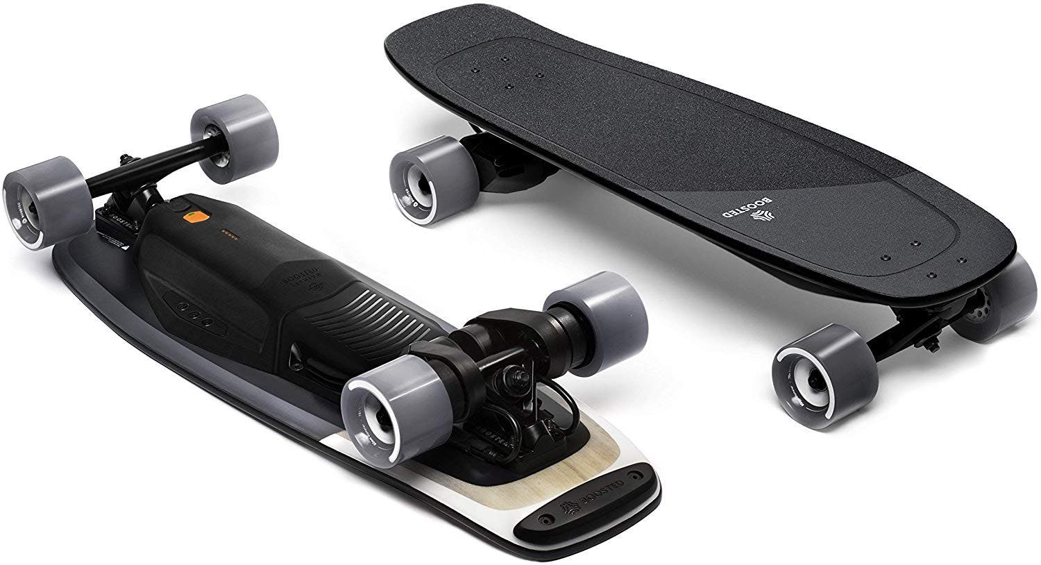 This electric skateboard offers top speeds of 20 miles per hour without sacrificing stability. At just 29.5 inches long, it fits perfectly under a desk or in overhead storage compartments on buses and trains. It features a kick-tail design that allows for quick pivoting in close quarters, and lets the skater "float" over road imperfections.