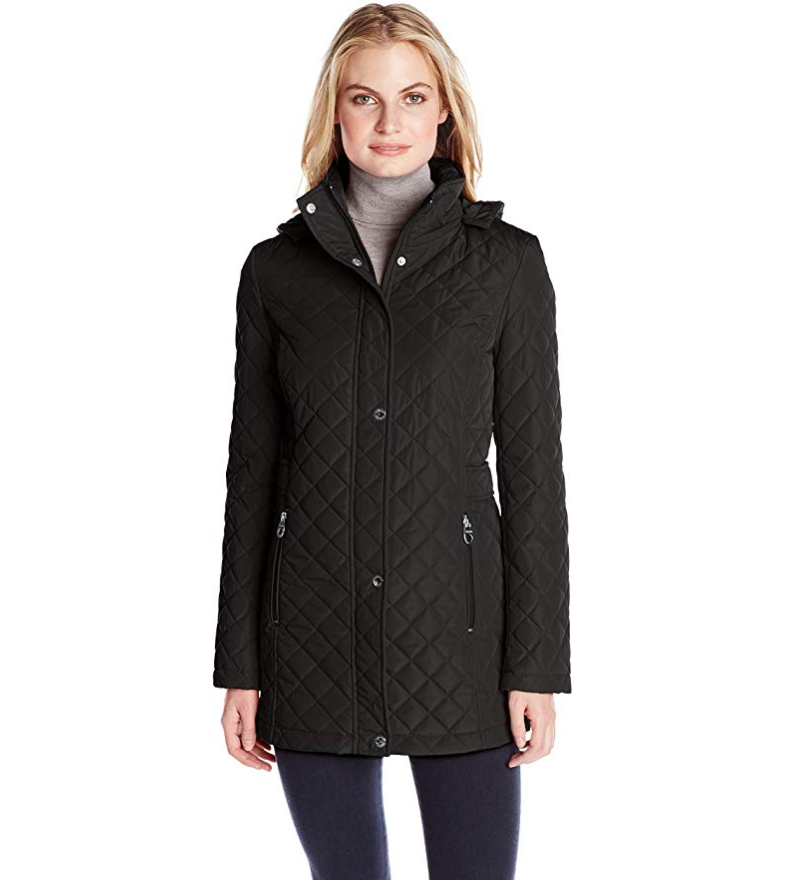 This year, give her a jacket that she is sure to wear, like this diamond-classic quilted jacket. Great for just about any occasion, this jacket features a standing collar, removable hood and zippered side pockets.