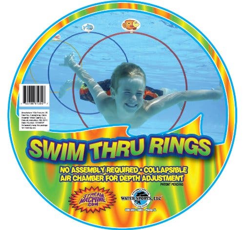 These swimming rings are the ultimate underwater pool toy! Each ring features an adjustable air chamber that lets you adjust the depth. No assembly is required, and the rings themselves fold up for easy storage. These swim-through rings are recommended for children ages 8 and up. As with any product of this nature, adult supervision is required.