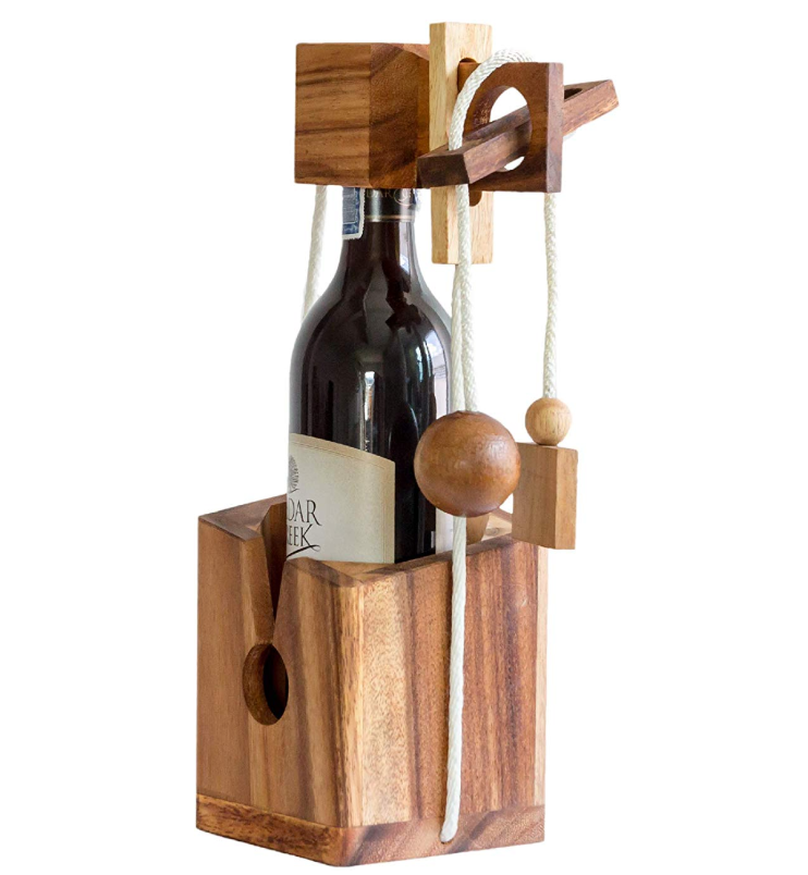 White Elephant participants will want this gift that provides some challenging entertainment. What's the reward? A bottle of wine! However, it's not going to be as easy as it looks to crack that puzzle and get to the good stuff.