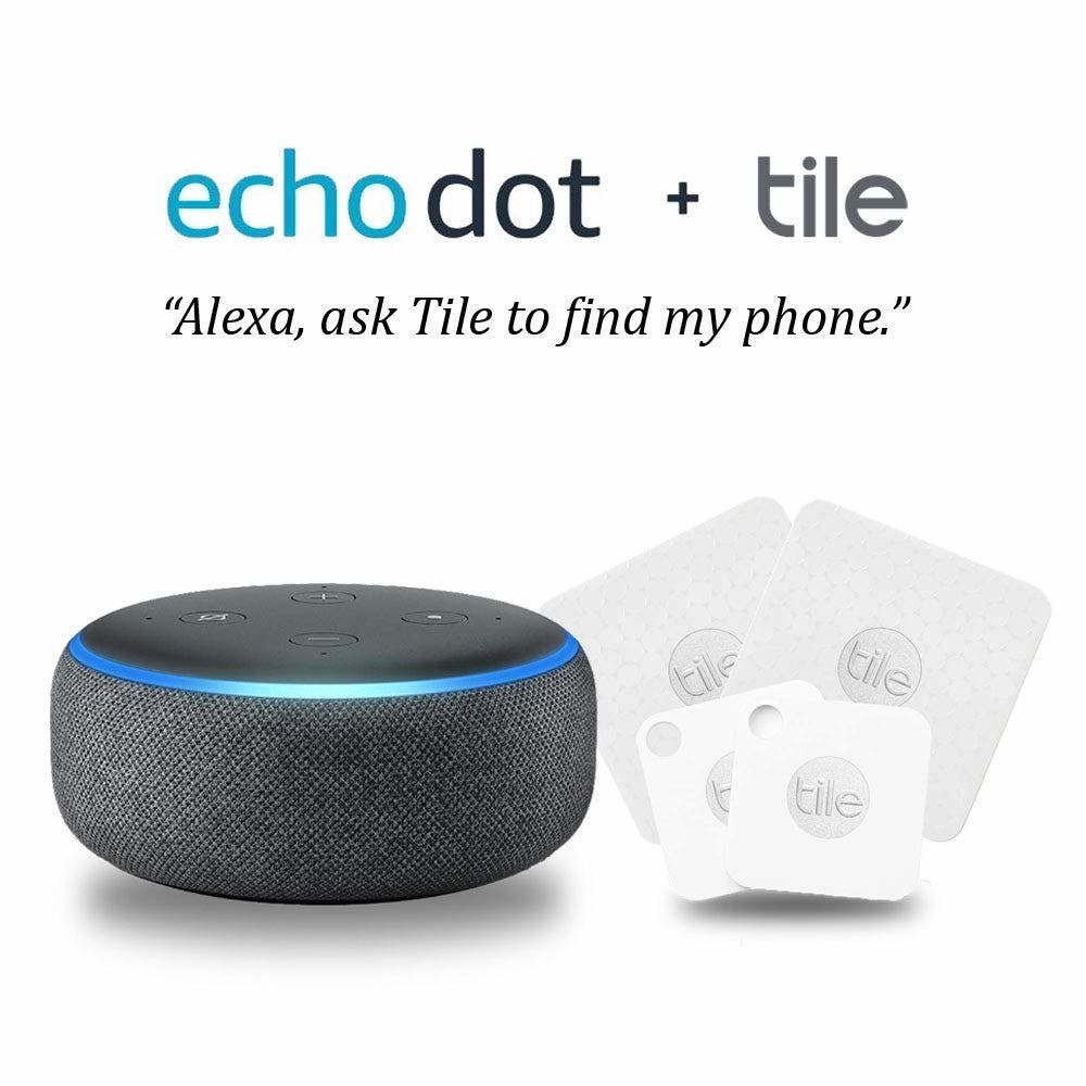 This bargain bundle includes an Echo Dot and the Tile Mate and Slim Combo pack (4 Tiles total). Just enable the Tile skill in your Amazon Alexa app to easily locate your Tile using only your voice. Just say, "Alexa, ask Tile to find my keys." Tile Mate can also find your phone and ring it even if it's on silent.
