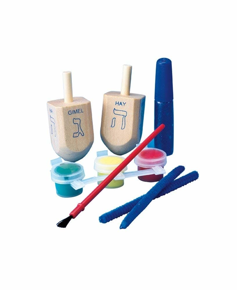 Playing with a dreidel is fun, but it's even more fun when you've painted and designed it yourself. This fun, educational and crafty kit includes two large dreidels, paint, glitter glue and a paint brush — everything you need to design and decorate your own!