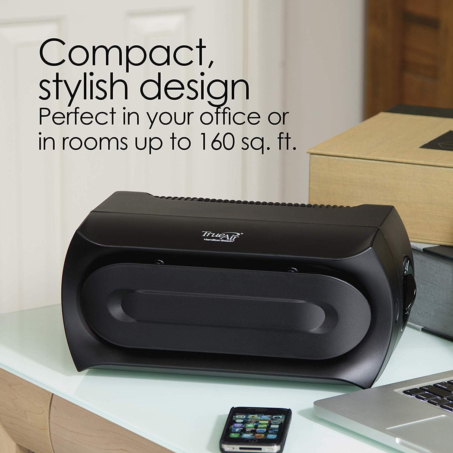 The Hamilton Beach True Air Allergen Reducer has a compact design and can be used horizontally or vertically. With an ultra-quiet motor and fan, you'll hardly hear it while it's on. There are three speeds to give you ultimate control: Set it on high for the fastest air cleaning, medium for all-day use or low when extra quiet is needed.