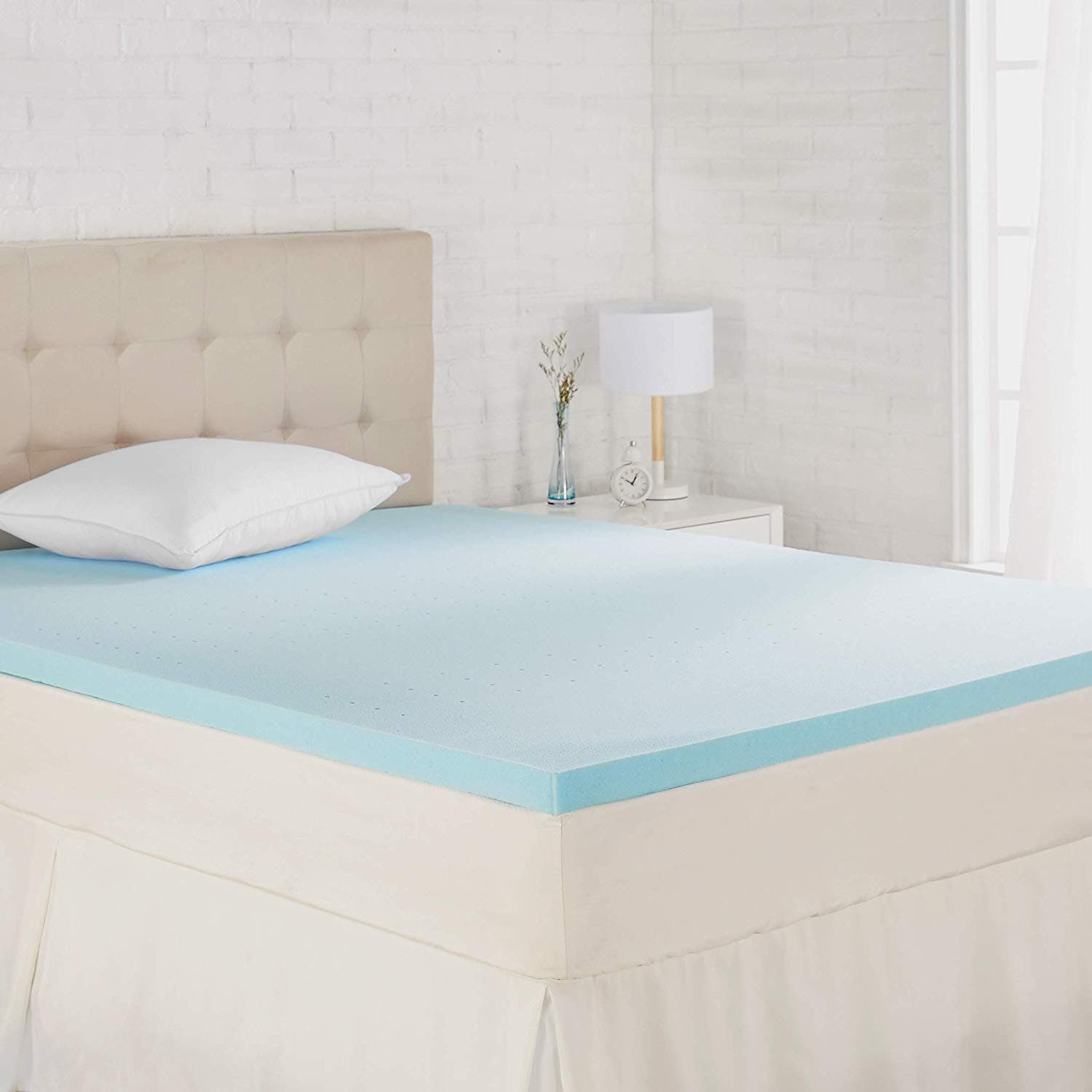AmazonBasics Cooling Gel-Infused Memory Foam Mattress Topper (25 percent off*) — This 2-inch thick memory foam mattress topper is infused with cooling gel to help keep your body temperature regulated. It features open airflow channels for exceptional breathability and conforms to your body’s shape and weight for ultimate comfort and ergonomic support. Available in multiple sizes; prices and discounts may vary.