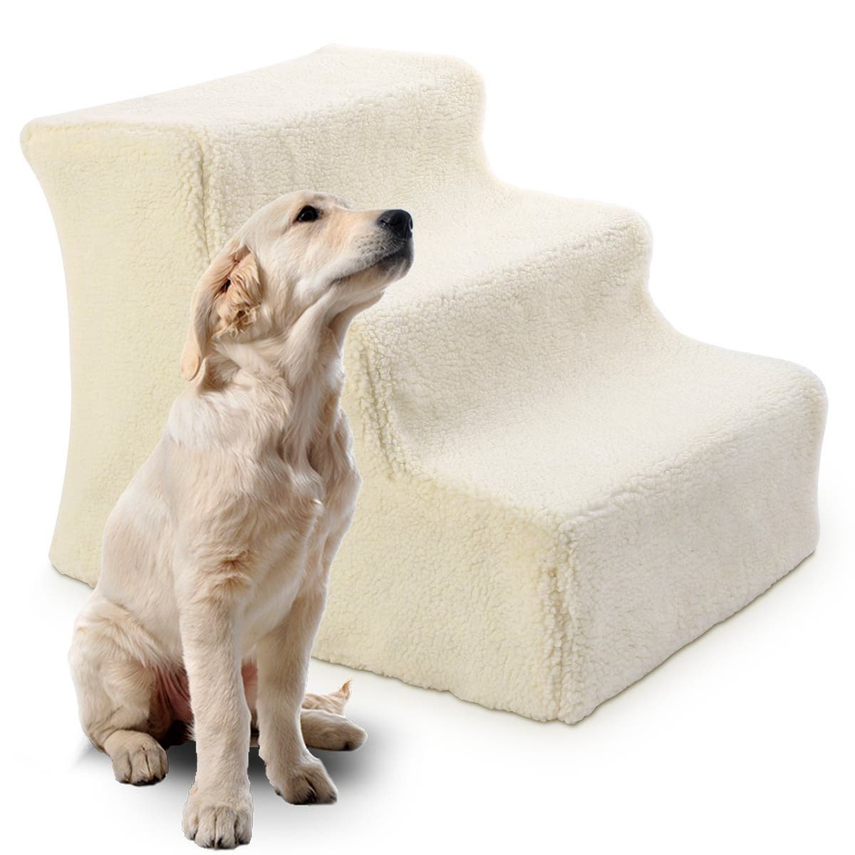 Make climbing onto the couch or into your bed easier on your dog and her joints with steps that are just her size. These padded pet stairs are ideal for small, medium and large dogs up to 110 pounds, and the cover is machine washable.