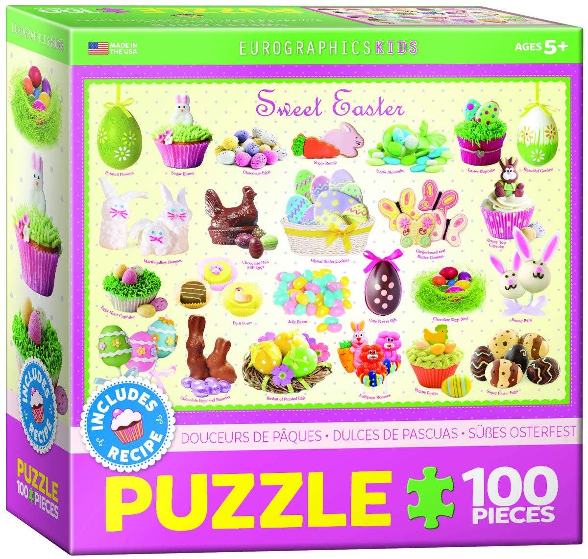 This 100-piece puzzle features all your favorite sweet Easter treats. When finished, it measures 13 by 19 inches. Recommend for kids ages 6 and up.