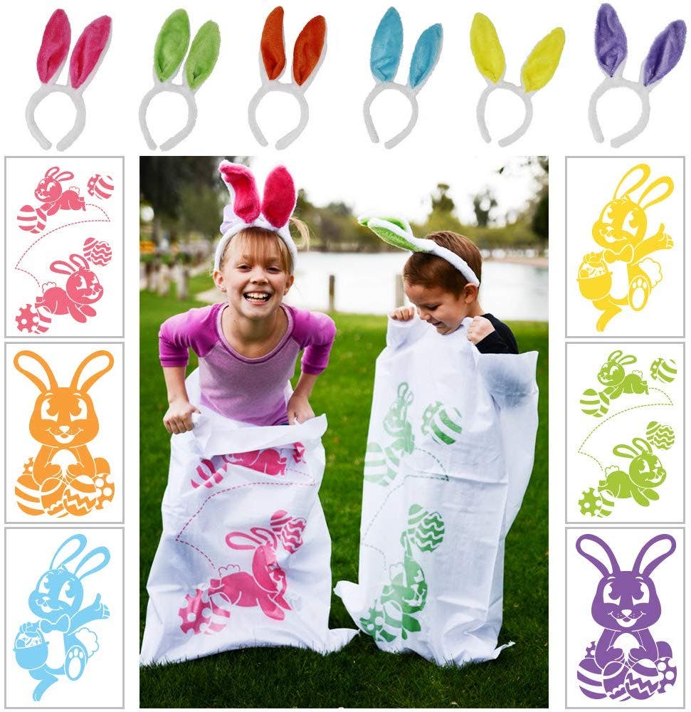 Let the bunny races begin! This set of six burlap sacks and colorful rabbit ears is great for family fun in the backyard.