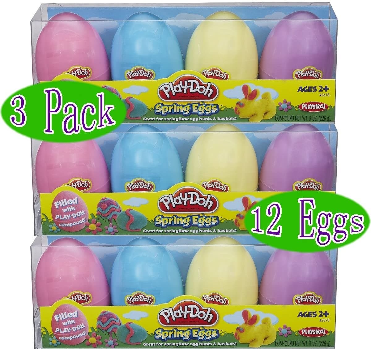 These Easter eggs are filled with squishy, nontoxic Play-Doh modeling compound. Each pack contains multiple colors. Recommended for kids ages 2 and up.
