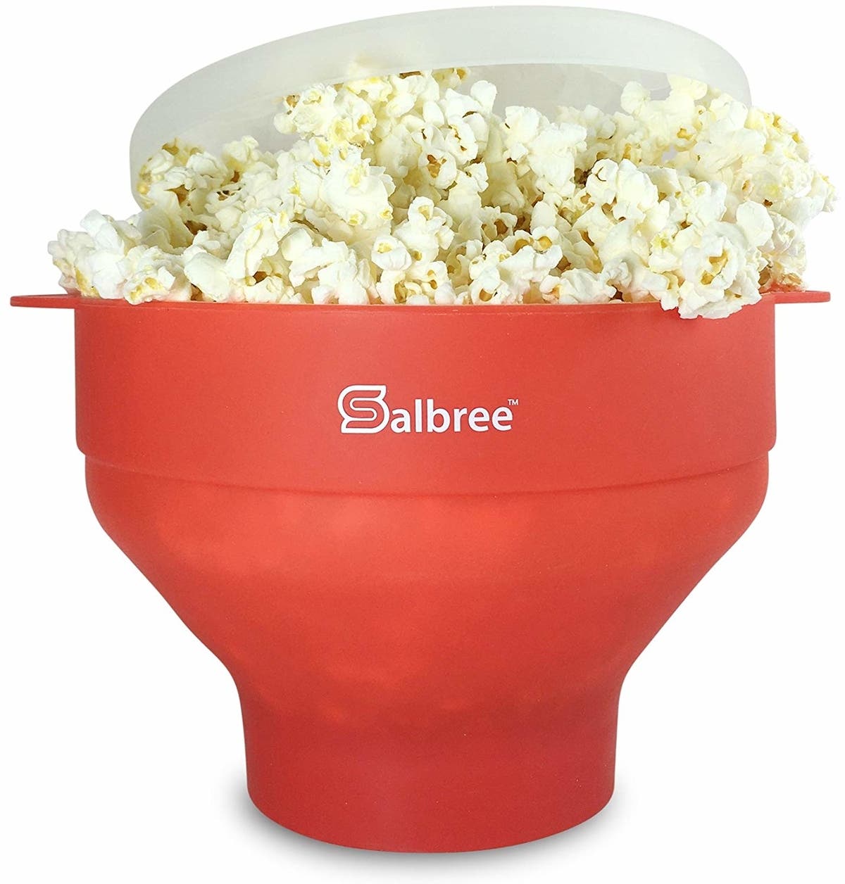 Making healthy popcorn is fast and easy with this BPA-free silicone popper. Just expand it open to its full height (the popper collapses flat for convenient storage), pour in your kernels (the bottom line is equal to 1/4 cup), place the lid loosely inside the bowl, and put it in the microwave for 2-4 minutes (timing will vary based on your microwave). Be careful when removing the popcorn popper from the microwave as contents will be hot. You can remove the lid and enjoy your fresh, delicious snack straight from the bowl. If you want, you can drizzle some olive oil over the kernels before popping or add salt or toppings later. The Original Salbree Microwave Popcorn Popper is available in 14 different colors.
