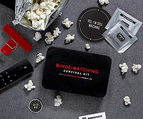 This little box is filled with 18 clever, binge-watching marathon essentials including a sofa yoga guide, stain remover, facial tissues, folding sporks, socks, a decision coin, breath drops, snack clip, dental floss, coasters, facial cleanser and hand cleaner. It makes a great gift for any movie buff or TV enthusiast!