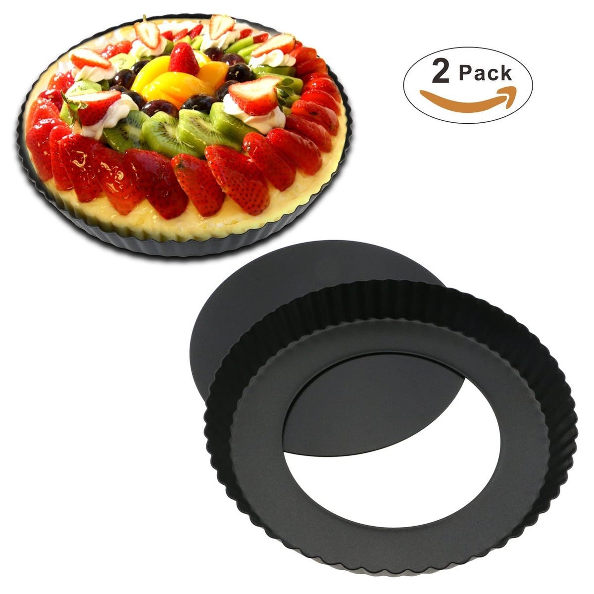 TedGem Non-Stick Removable Loose Bottom Quiche Tart Pie Pan (2-pack)