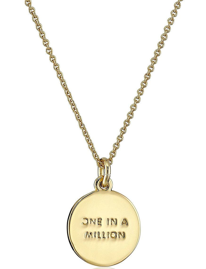 This pretty pendant necklace has her initial on one side and the words "One in a Million" on the other. It hangs on an 18-inch gold-tone chain with a lobster-claw clasp.