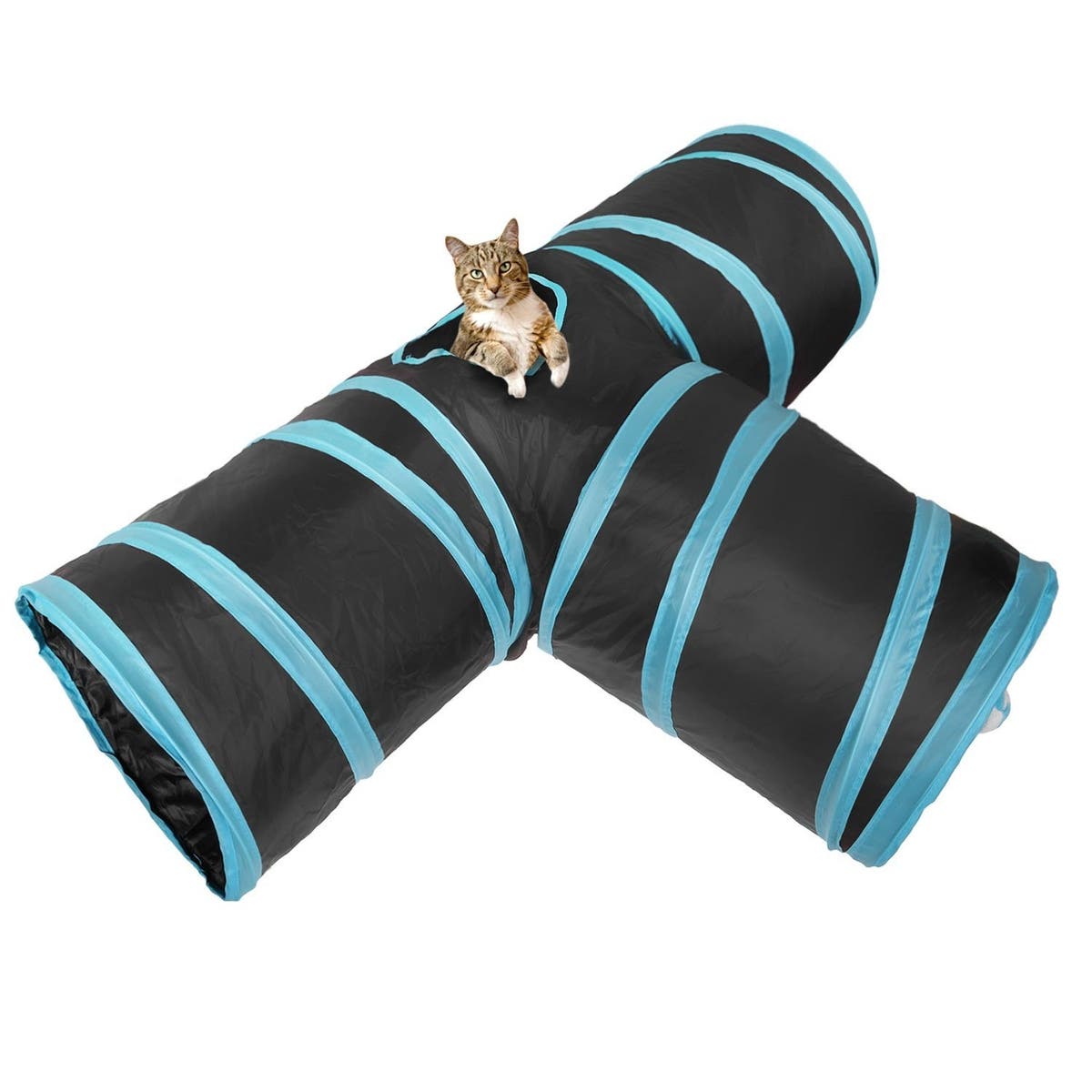 This spacious tunnel has built-in crinkle paper and a ready-to-bat soft ball no cat can resist. It's made of durable, tear-resistant polyester wrapped around a sprung-steel frame with protective ends (for safety), so it can stand up to tough scratchers while keeping your cat endlessly entertained.