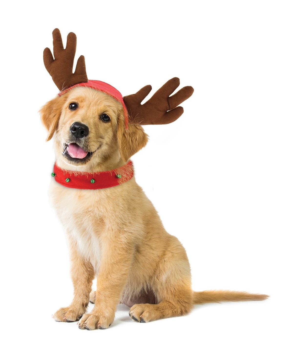 You know Dasher and Dancer, but what about Dog the reindeer? Your pup can be an honorary member of Santa's flight crew with this reindeer antler hat band and jingle bell collar. For bigger pups, make sure to size up with a larger pair of antlers.