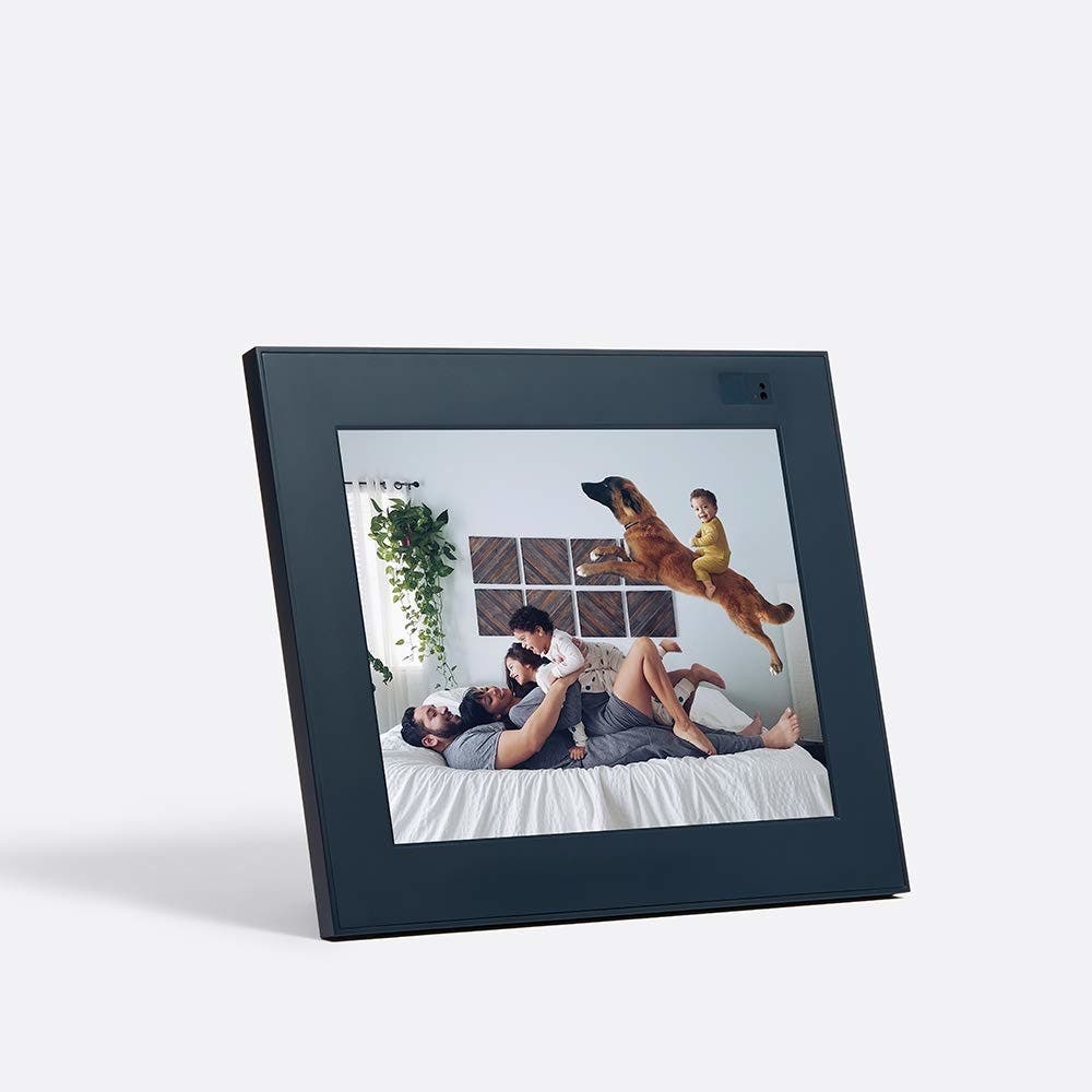 This brilliant frame is the fastest, easiest way for family members near and far to share and beautifully display photos. The Aura app lets anyone in your family upload their photos via WiFi, and share unlimited photos in the frame without subscription fees. Just swipe left or right to see more photos, and swipe up to favorite a picture and get more information on it.