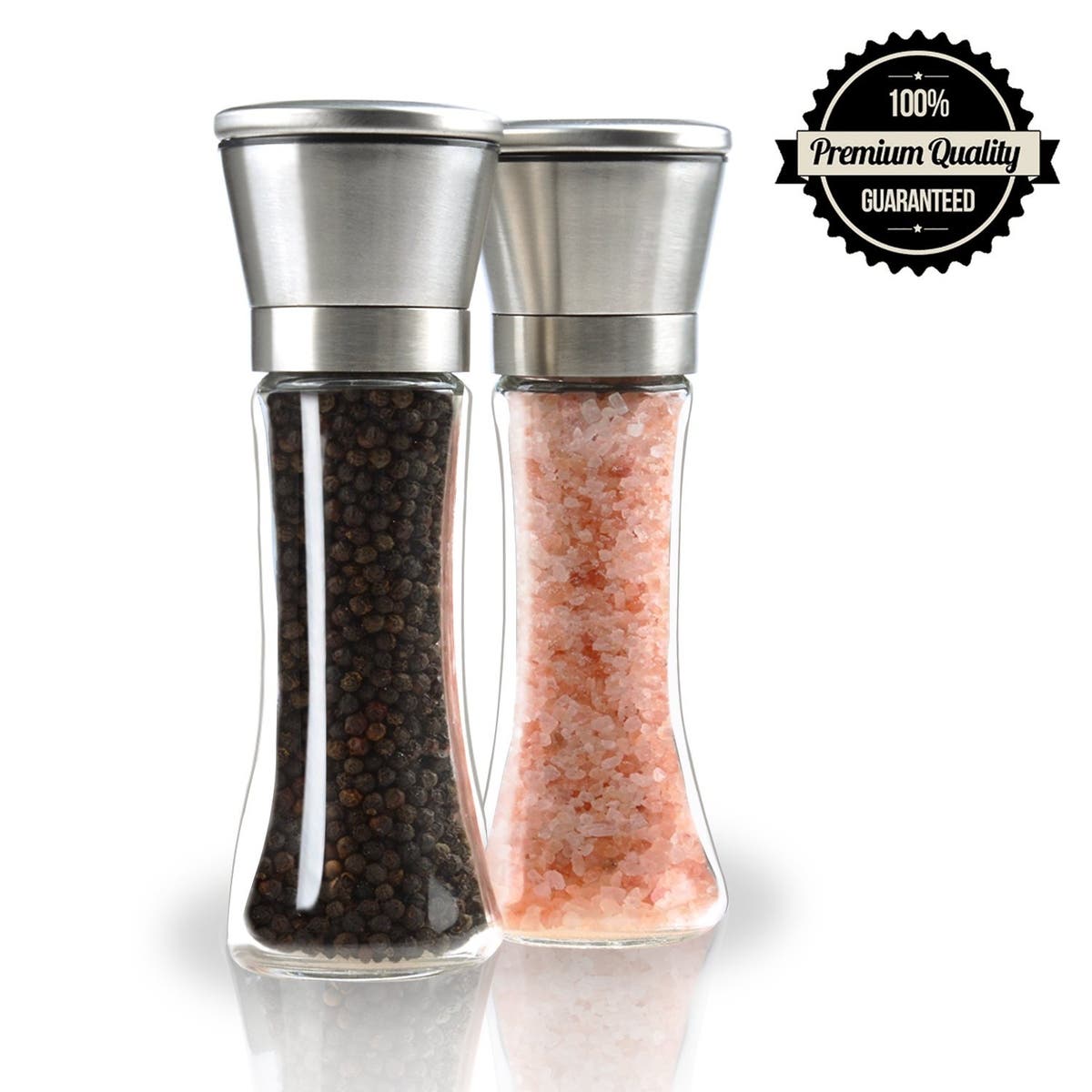 Freshly ground pepper isn't a luxury reserved for restaurant eating anymore. The brushed stainless steel pepper mill and salt mill each have an adjustable motor that lets grind any salt, spice or herb to the exact coarseness you desire. Each grinder also has a sealing lid to keep the contents fresh for as long as possible.