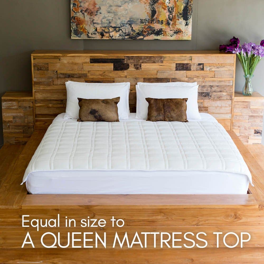 The Baloo weighted blanket is made of high-quality cotton and filled with certified lead-free glass microbeads. It's comparable in size to a queen mattress, so it fits nicely on full and queen beds. It's large enough for most couples and just the right size for individual users.
