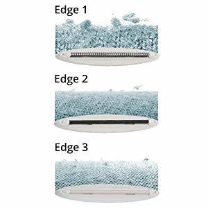 Here's how it works: The Gleener fabric shaver has three interchangeable, fabric-safe edges designed to target different kinds of fuzz balls. Edge 1 is ideal for big and bulky pills, like the ones you find on heavy woolens, blends and synthetics. Edge 2 is best for medium pilling, like what you find on cashmere, finer wools and fleece. Edge 3 is perfect for the fine pills that ball up on your summer knits, T-shirts, silk blends and ultra delicates.